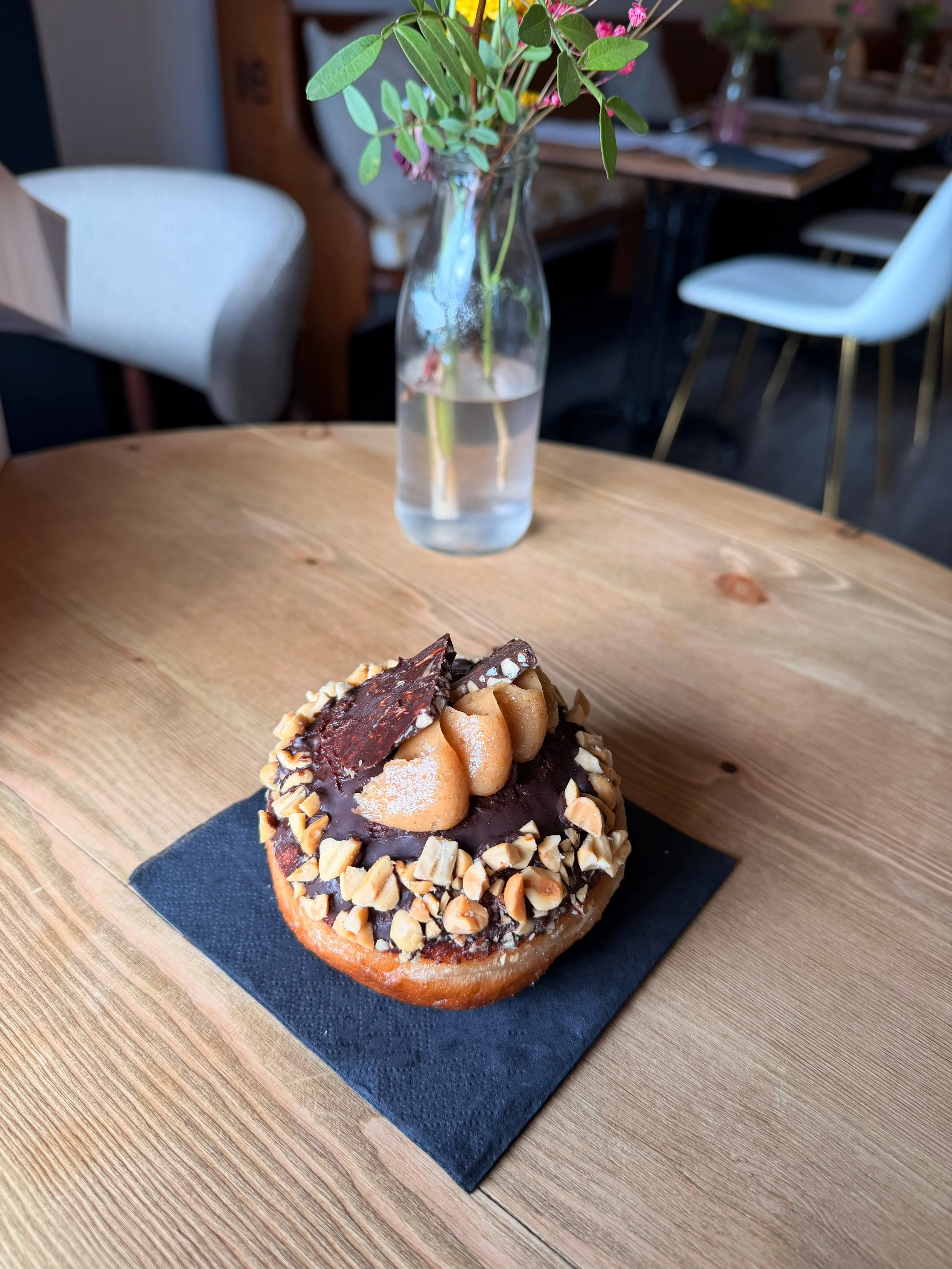 Peanut butter cream fillied, topped with a chocolate ganache and a chocolate peanut disc