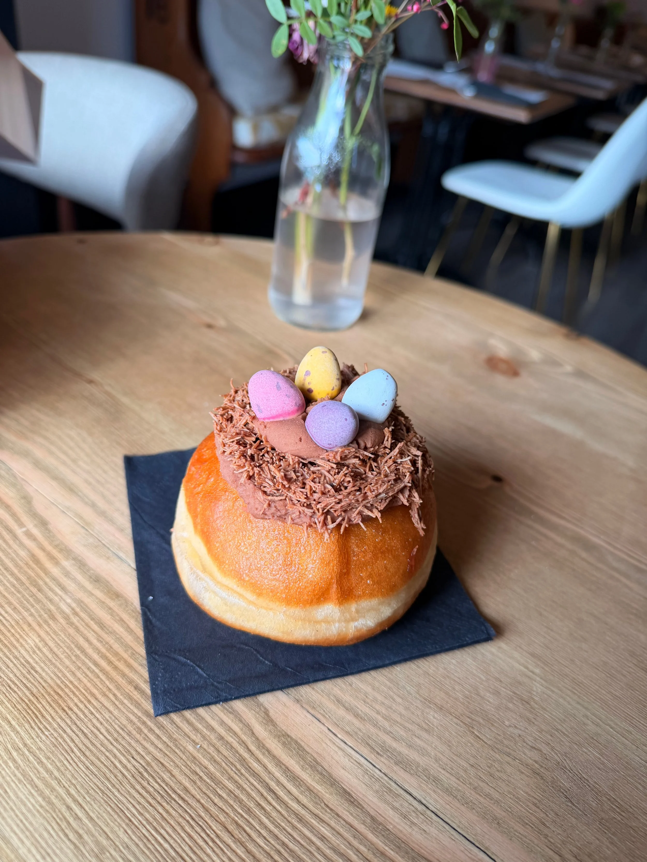 Chocolate ganache filled, topped with a chocolate kadayif ‘nest’ and mini eggs