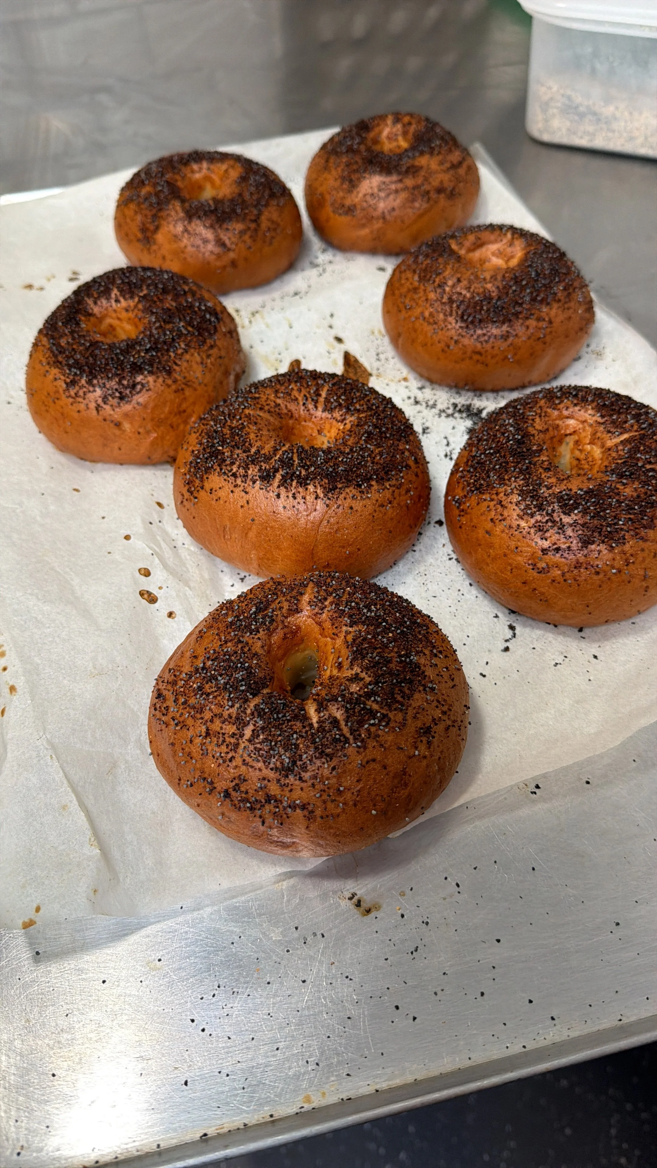 Making fresh bagel doughs daily.